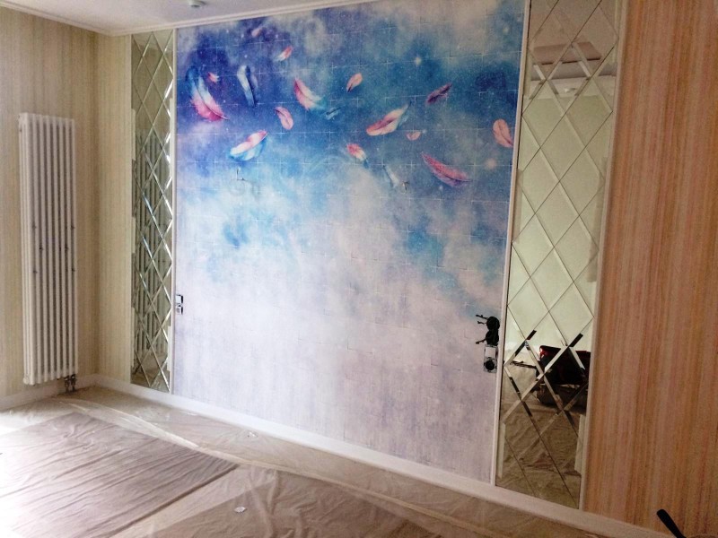 Двусторонняя фацетная композиция "ромбы", обрамляющая художественное панно для комнаты.