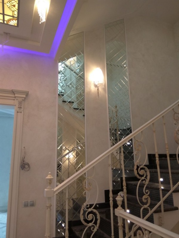 Зеркала с гравировкой украшающие лестницу