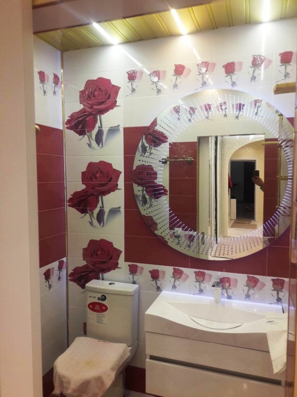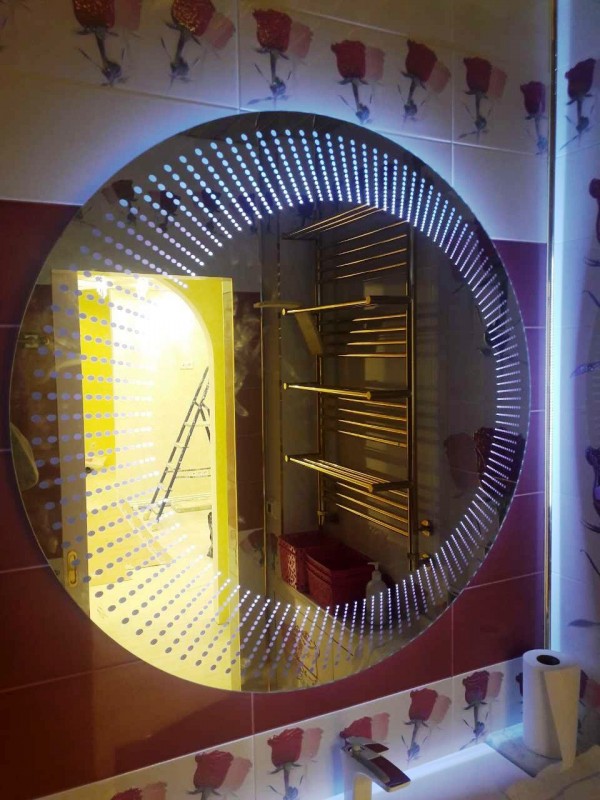 Круглое зеркало с подсветкой и пескоструйным рисунком.